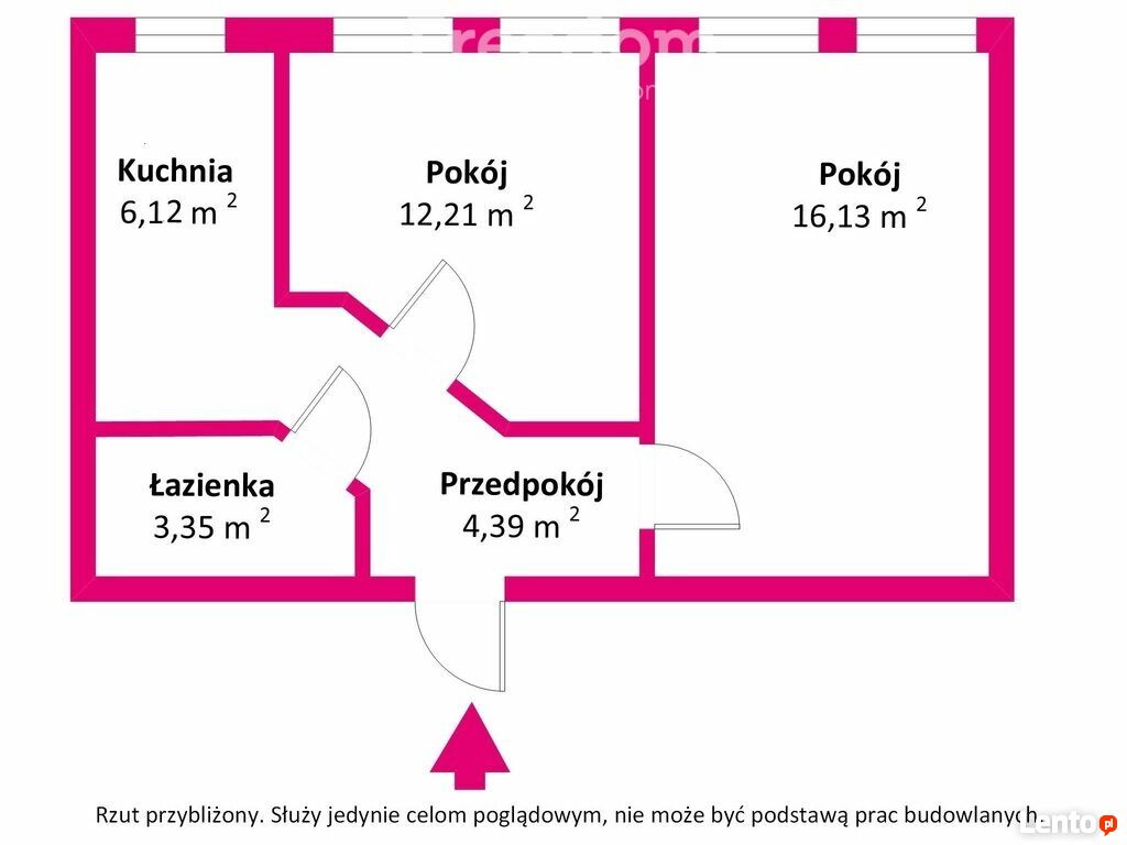 Mieszkanie składa się z przedpokoju, kuchni, łazienki oraz 2 pokoi.